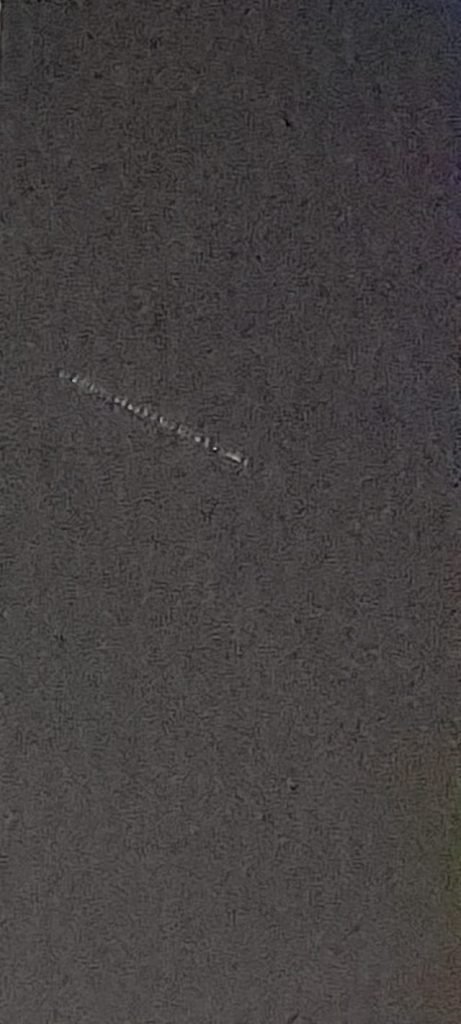 Se trata de el tren de satélites de Starlink, la empresa de Elon Musk. El paso de los satélites se pudo apreciar a simple vista y se pudo aprovechar el cielo despejado de la jornada para tomar fotos y grabar el suceso.