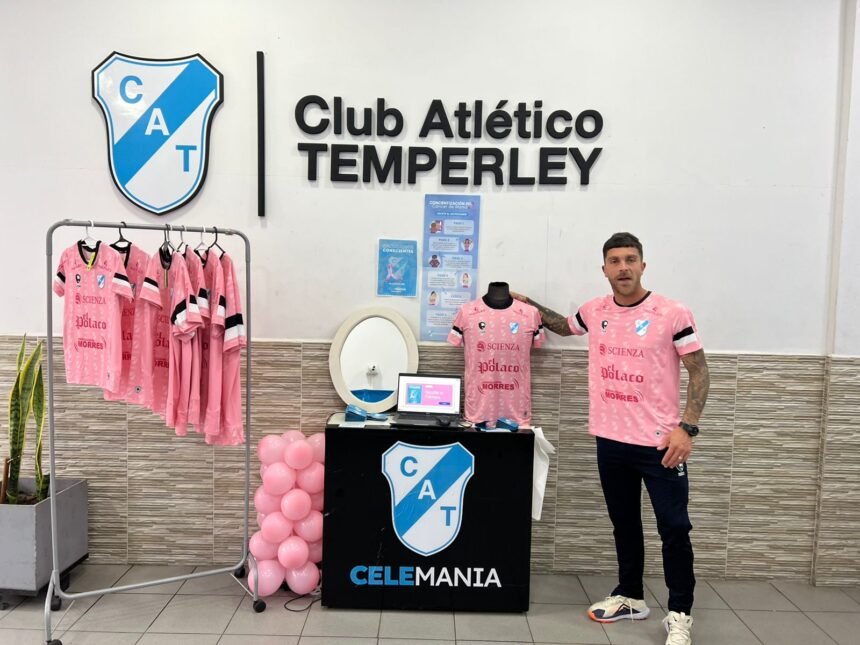 La camiseta rosa ya se encuentra disponible en Celemanía, la tienda oficial de Temperley ubicada en Av. 9 de Julio 360, con precios especiales para socios.
