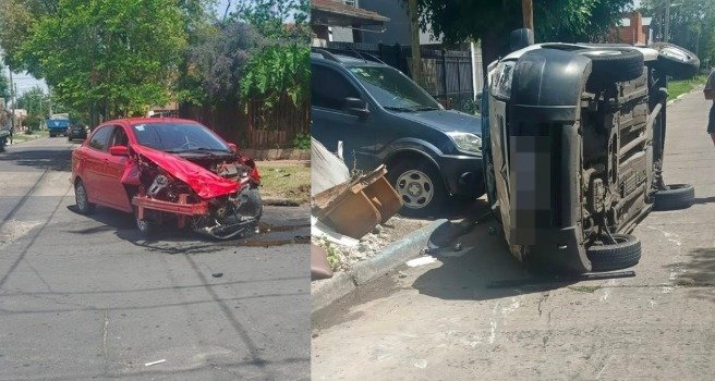 Choque y vuelco en una esquina de Temperley dejó importantes daños materiales pero afortunadamente, sin heridos graves