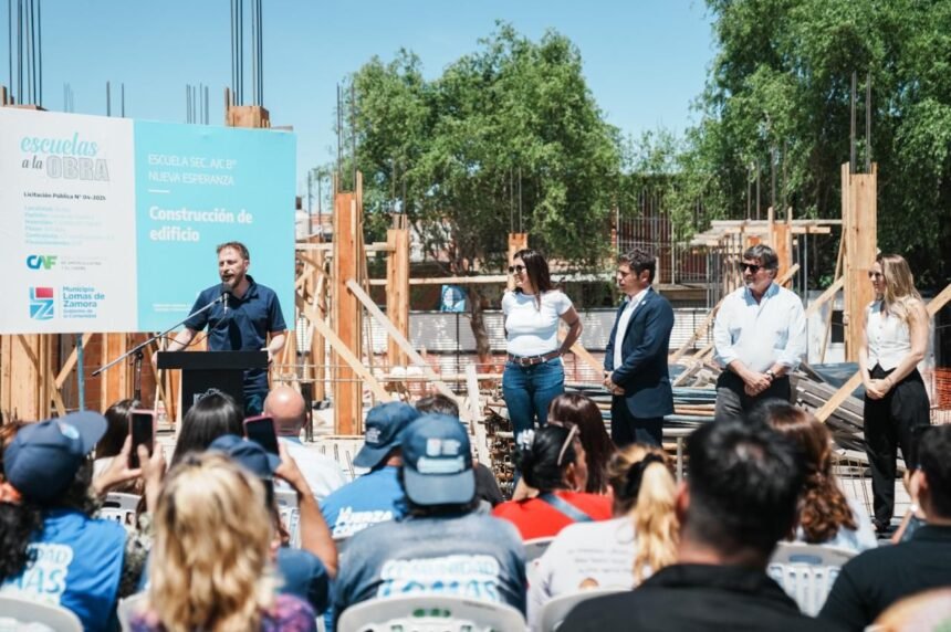 El gobernador Axel Kicillof y el intendente Federico Otermín supervisaron la construcción de la nueva escuela secundaria del Polo Educativo de Santa Catalina. La obra, financiada mediante un crédito de CAF, beneficiará a más de 2.500 familias del barrio.