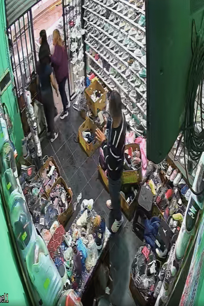 En ese momento, dos vendedoras intentan localizar al sujeto que había salido del negocio para exigir que devolviera la mercadería que llevaba puesta. Mientras tanto, la dueña del local trataba de impedir que el otro se retirara sin abonar. En medio de una actuación para simular un supuesto error en la transferencia, uno de los hombres devolvió un par de zapatillas.
