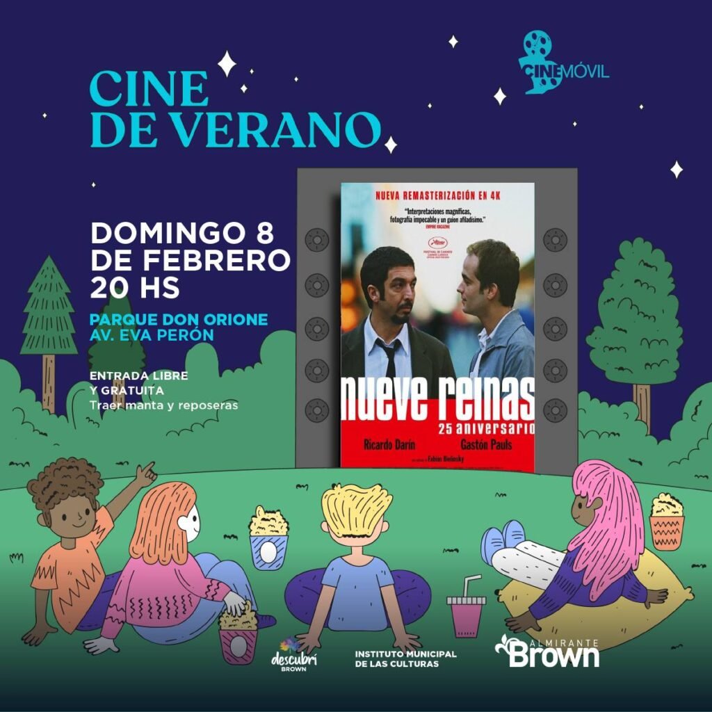 El Municipio de Almirante Brown confirmó que este fin de semana regresa el ciclo “Cine de Verano”, una propuesta cultural gratuita que se desarrollará en Parque Carrillo y Parque Don Orione, con la proyección del clásico argentino “Nueve Reinas”.
