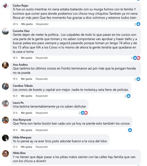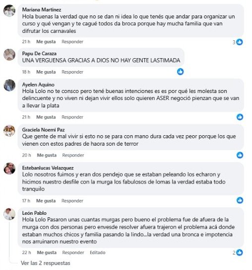 Entre los comentarios, varios vecinos remarcaron el impacto en las murgas infantiles, que se preparan durante mucho tiempo y a veces deben retirarse sin actuar. “Hay mucho trabajo detrás y por unos pocos siempre pagan los chicos”, resumió otro asistente.