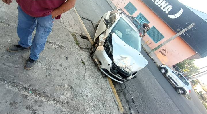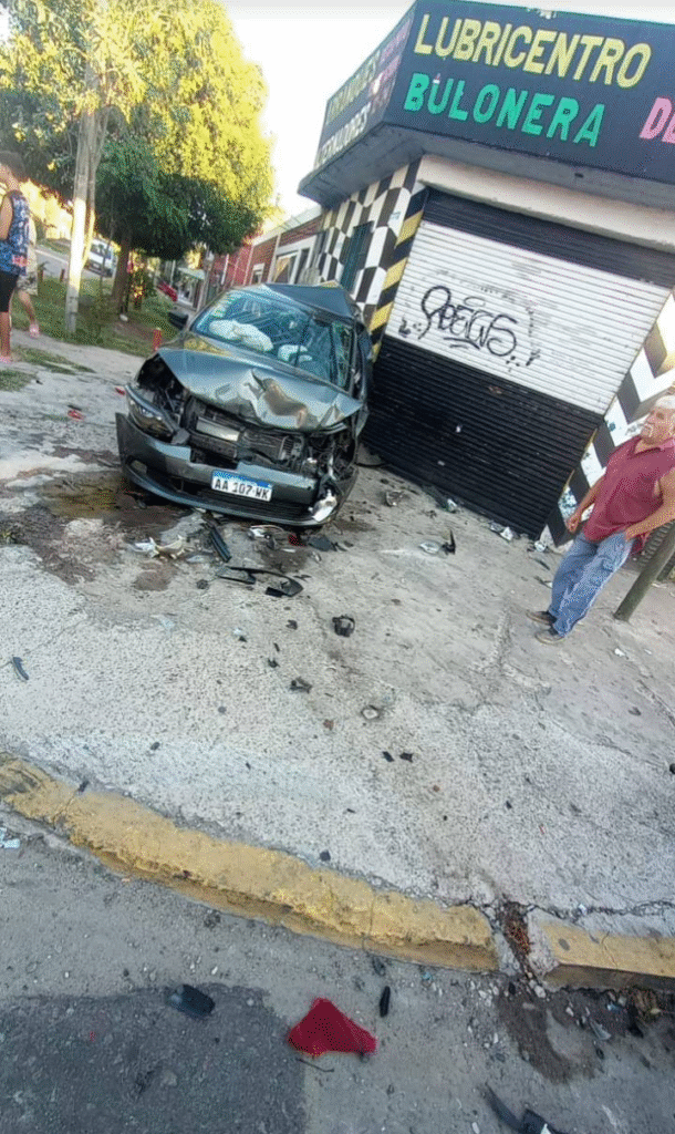 El impacto provocó que el auto negro terminara incrustado contra el frente del Lubricentro Besing, generando daños estructurales en el local.