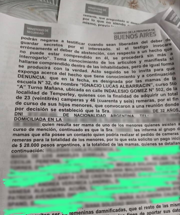 En imágenes compartidas por las propias familias se observa documentación que correspondería a una denuncia formal.