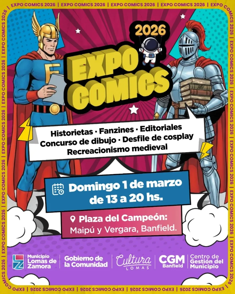 La Expo Cómics 2026 tendrá lugar este domingo 1° de marzo en la Plaza del Campeón, en Banfield, con acceso libre y gratuito. El evento ofrecerá historietas, fanzines, recreación medieval, un desfile cosplay y un certamen de dibujo.