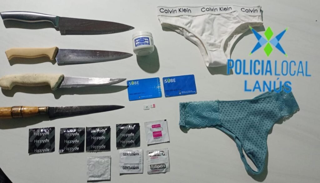 Durante el allanamiento, los efectivos policiales secuestraron elementos que complican la situación procesal del acusado. En el lugar había prendas de vestir que coinciden con las captadas en las grabaciones. También hallaron armas blancas, material de interés para la causa (teléfono celular, tarjetas SUBE y diversos insumos), rendas de vestir femeninas y otros elementos que sugieren una actividad delictiva sostenida en el tiempo.