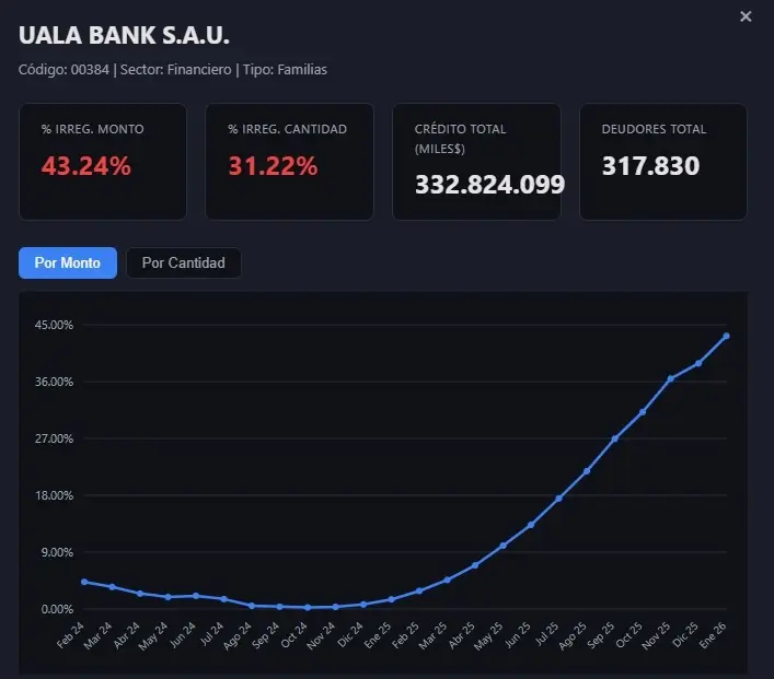 El aumento de la falta de pago en préstamos encendió alertas en el sistema de crédito, especialmente en las billeteras virtuales. En ese contexto, Ualá quedó en el foco: un análisis basado en datos del BCRA indicó que registra una mora del 43% en su negocio bancario y hasta el 63% en su cartera como billetera, por encima del resto del sector.