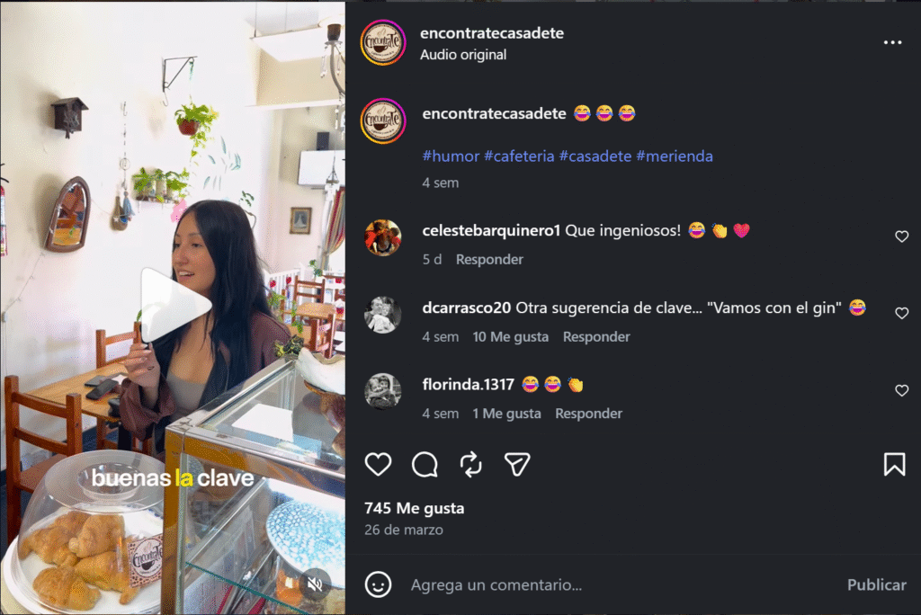 Lejos de una estrategia rígida, el enfoque se sostiene en la naturalidad y el disfrute personal. “La verdad que me divierto mucho y me sale natural, pero porque me divierto, me gusta hacerlo”, agregó. En ese sentido, destacó que el principal objetivo es fortalecer la visibilidad del emprendimiento: “Así que salió así, natural. Buscando que la gente nos conozca y se visibilice la cafetería”.