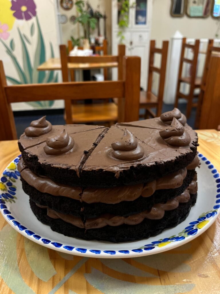La propuesta gastronómica se centra principalmente en la pastelería artesanal. “Lo fuerte es la pastelería, la pastelería la hago yo. Es totalmente casera. Usamos materias primas de primera calidad y no se usan en ningún momento ni conservantes ni colorantes”, afirmó. Entre las opciones se incluyen tortas clásicas y variadas, desde el lemon pie hasta el carrot cake y cheesecakes, además de alternativas saladas como sándwiches de chipá, tostados y medialunas rellenas.